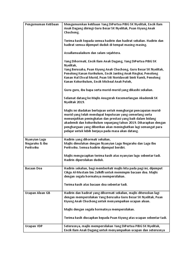 Doc Skrip Penyampaian Hadiah Anugerah Cemerlang Kuyungon Academia Edu